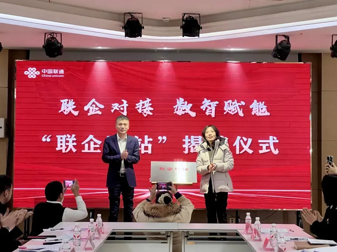 联通市分公司副总经理吴庆虎共同为“联企驿站”揭牌