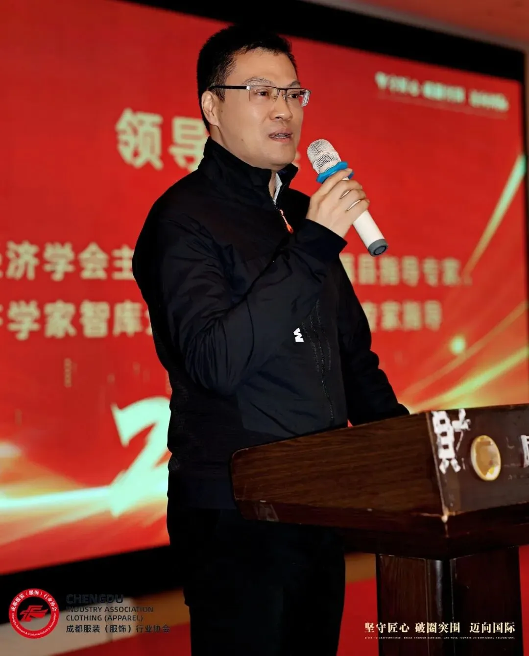 李雪辉会长讲到,协会始终坚持“服务会员、赋能产业、引领发展”的核心使命,切实将协会打造成会员企业“共同解决疑难、共同吐槽倾诉”的家园。他重点提及2025年三大标志性成果:一是成功举办成都百万职工技能大赛服装制版师比赛,首次自主命题“我的校服我做主”,得到各级政府及市教委高度认可,推动校服改革向品牌化、开放式方向发展;二是联合市经信局编制《服装行业5G数智工厂建设指南》《服装行业数字化快反工厂建设指南》两项团体标准为中小企业转型提供清晰路径;三是积极推动产业出海,组织会员企业对接广州交易会等资源,开展跨境电商交流,为2026年全面出海奠定基础。