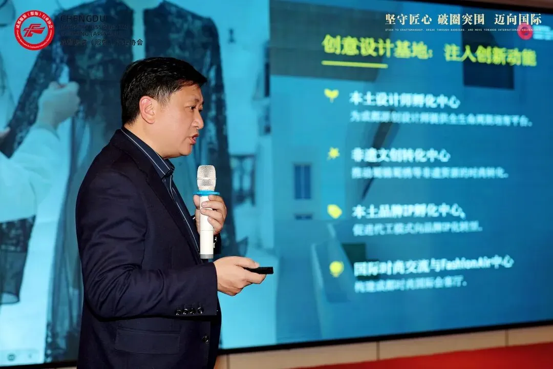 协会执行会长兼秘书长严俊明做成都服装产业国际时尚创意中心发布