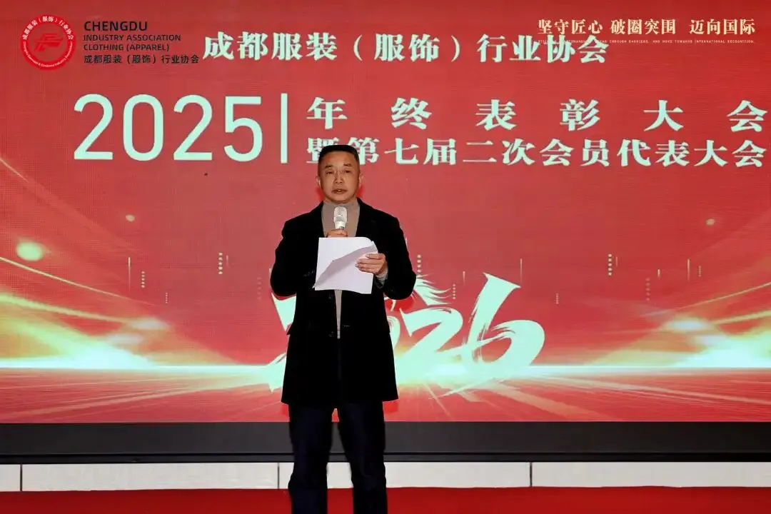 近日,成都服装(服饰)行业协会第七届二次会员代表大会暨2025年终表彰大会顺利举行,行业领导、会员代表及各界嘉宾齐聚,回顾成果、表彰先进、部署蓝图,共促成都服装产业高质量发展。