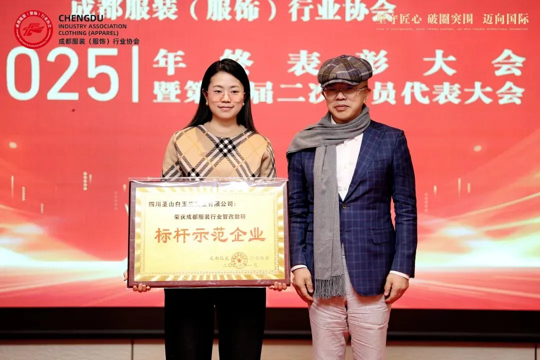 协会会长李雪辉为2025年度成都服装行业领军企业颁奖