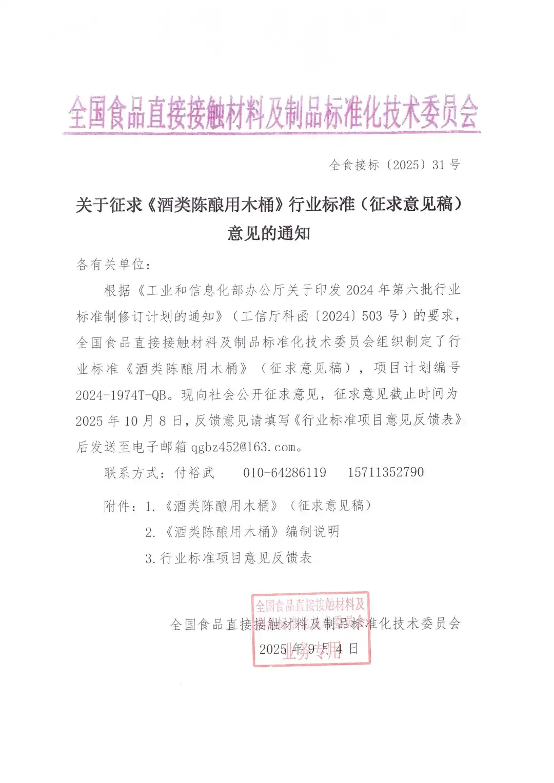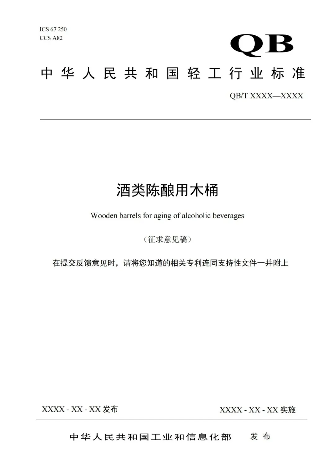 关于征求《酒类陈酿用木桶》行业标准(征求意见稿)意见的通知