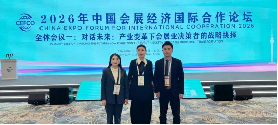 2026年1月21日至23日,2026年中国会展经济国际合作论坛(CEFCO 2026)在湖北省武汉市举办。CEFCO由中国贸促会创办于2005年,是唯一经国务院批准的国家级、国际性专业会展论坛,本届论坛以“变革的时代:共塑链接 智创未来”为主题,由中国贸促会、国际展览业协会、国际展览与项目协会、独立组展商协会、国际大会及会议协会共同主办,武汉市人民政府承办,吸引来自中国、美国、德国、英国等20多个国家和地区的600余位会展机构、企业代表及专家学者参会。