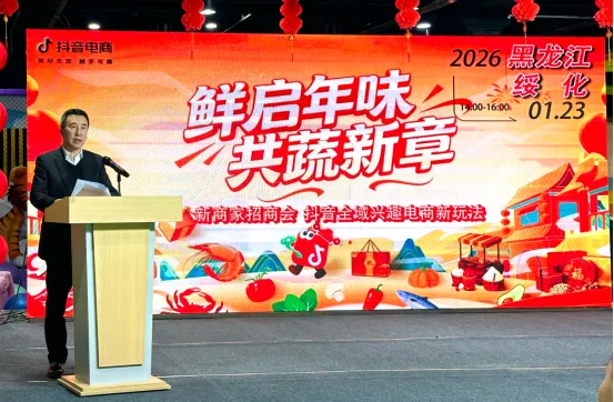 2026年1月23日,在黑龙江省绥化市直播电商产业基地内,一场以“鲜启年味,共蔬新章”为主题的“抖音电商年货节蔬菜行业招商会-绥化站”对接合作活动成功举办。本次活动由绥化市农业农村局指导,抖音电商主办,绥化市金禾网络有限公司(绥化市直播电商产业基地)承办,旨在依托抖音电商平台优势,挖掘鲜食玉米及各类蔬菜在年货节期间的巨大市场潜力,助力本地农户及商家实现品牌化、规模化增长。