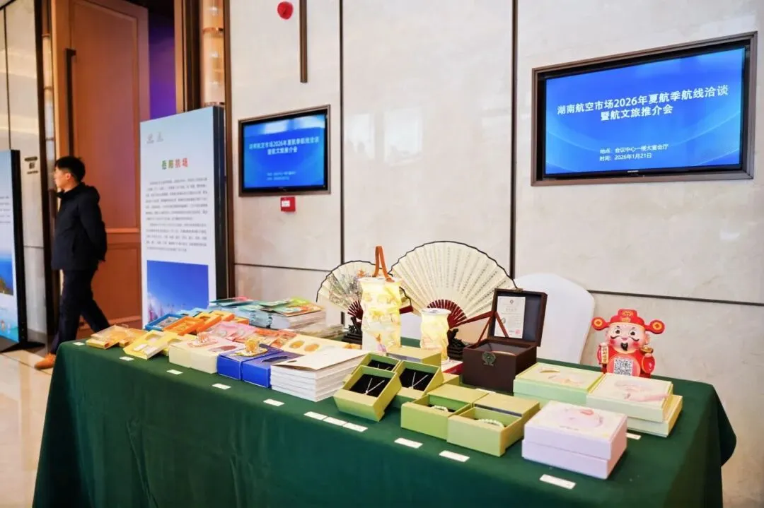 1月21日,湖南机场集团与岳阳市人民政府联合举办湖南航空市场2026年夏航季航线洽谈暨航文旅推介会。近两百名来自省级相关单位、各地市政府、国内主要机场集团、航空公司及文旅企业的代表齐聚岳阳,共同谋划夏航季航线布局,深化航旅融合,助力湖南民航与文旅产业高质量发展。湖南机场集团党委副书记、总经理崔武松、党委委员王其东,岳阳市委一级巡视员、市政府党组成员李美云出席会议。