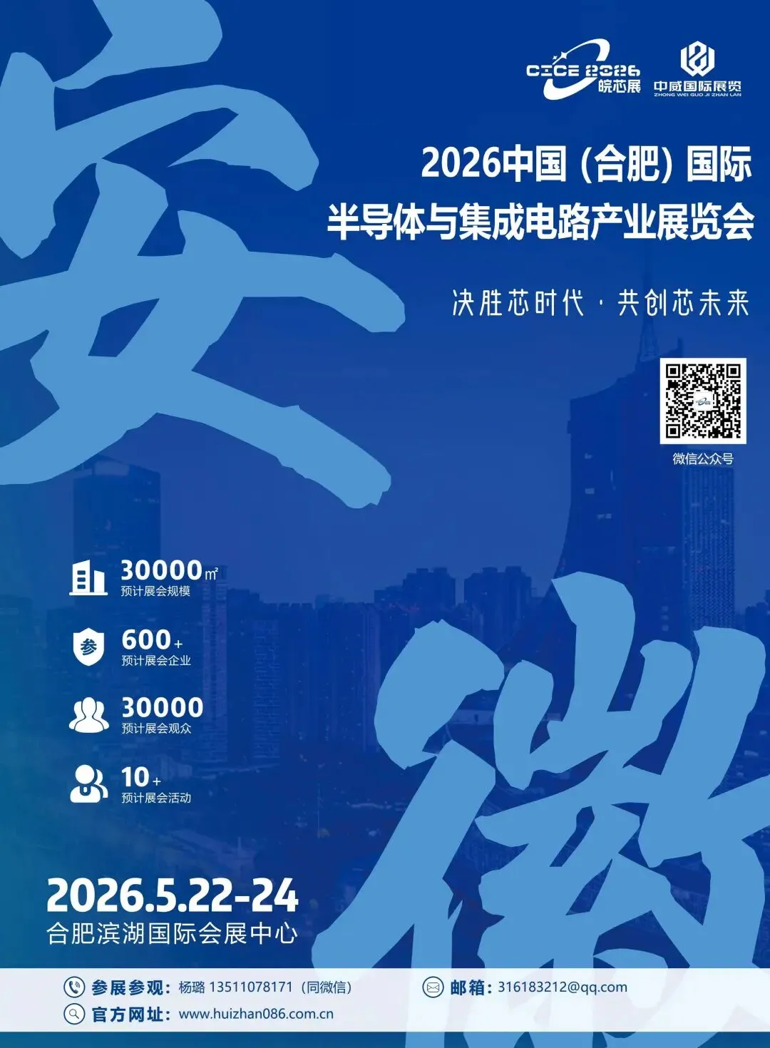 2026中国(合肥)国际半导体与集成电路产业展览会2026年5月22-24日合肥滨湖国际会展中心参展咨询:杨璐 13511078171 以习近平新时代中国特色社会主义思想为指导,全面贯彻党的二十大和二十届二中全会精神,落实中央经济工作会议部署,契合数字中国与数字安徽建设要求,秉持创新驱动理念,以创新为产业发展第一动力、以数据为关键生产要素。总书记在《求是》发表的重要文章中强调,要聚焦半导体与集成电路等重点领域,加快锻造长板、补齐短板,培育具有国际竞争力的大企业和生态主导型企业,构建自主可控产业生态,为我国半导体与集成电路产业发展指明了方向。 当前,全球数字化转型推动半导体集成电路产业成为核心驱动力,5G、人工智能、新能源汽车等领域的发展均高度依赖半导体芯片,在全球市场规模持续增长的同时也伴随新机遇与挑战。作为国家战略性产业,半导体行业获多重政策支持,“中国制造2025计划”“十四五”规划均将其列为重点。半导体集成电路如同数字时代的“心脏”,驱动着各个领域的创新变革。近年来,全球半导体市场规模持续增长,新兴技术不断涌现,为产业发展带来新机遇与挑战。 “2026中国(合肥)国际半导体与集成电路产业展览会”将于2026年5月22-24日在合肥滨湖国际会展中心隆重举办,展会将围绕“决胜芯时代,共创芯未来”的主题,为展商提供一个全球商贸交流空间。 合肥半导体展会的独特优势,在于“产业实景式”体验。立足全国性集成电路产业集聚区,展会可无缝衔接本地从EDA工具到晶圆制造的全产业资源,让参展者既能洞察前沿趋势,又能实地链接产业上下游,实现从信息获取到合作落地的高效转化。 选择合肥半导体展会,就是抢占产业高地入口。这里不仅能链接国内外半导体核心企业,更能直面芯片设计、高端制造等关键领域的创新成果与需求。下一步,合肥将以发展芯片设计、高端封装和特色晶圆体制造为重点,以开展与国内外企业合作为引擎,实现设计、制造、封装测试同步推进,加快建设全国性集成电路产业集聚区,全力打造(中国IC之都)。 2026合肥半导体展依托合肥作为安徽集成电路“一核一带”战略核心引擎的产业硬实力,以“设计-制造-封测-材料-设备”全链条生态为根基,新站高新区集聚50 +链上企业、省级特色产业园加持,2024年全省集成电路产量同比激增47.4%、2025年上半年保持9.9%稳健增长,恒烁半导体、开悦半导体等企业扎根各环节筑牢产业底盘;更有晶合集成(全球第一显示驱动芯片代工规模、2025 年前三季度营收81.3亿元、净利润同比暴涨97.24%)等龙头领航,其355亿四期项目(2026年1月启动、聚焦28/40nm工艺、月产能5.5万片)将催生千亿级采购需求,颀中科技、新汇成等科创板企业形成梯队格局;同时合肥产业创新已实现从“跟跑”到“领跑”,晶合集成1.8亿像素CIS试产、睿普康全球首款卫星双向通话芯片等技术突破加速国产替代,展会将同步展示前沿成果;依托 “一核聚智、一带拓域”布局,合肥可联动蚌埠、芜湖等沿江城市及长三角500 余家半导体企业,实现技术研讨与订单对接高效转化。展会为展商打造兼具产业深度、资源广度与落地效率的核心交流平台。 未来,安徽半导体的崛起势不可挡。芯片及半导体领域的系列项目,正成为驱动科技创新与产业升级的硬核动力,强势巩固其在全国产业链中的战略地位,为经济高质量发展注入澎湃动鴨。当前,覆盖研发、生产、应用全链条的重大项目正在安徽省内全面铺开,这些项目的成功必将推动安徽半导体产业领域的科技创新与发展,为构建国内顶尖的半导体产业链与生态体系,打下无可撼动的坚实基础。 合肥将聚焦“6+5+X”产业集群体系,在集成电路、新型♀镑显示、人工智能、空天信息等领域持续发力,进一步聚焦原始创新,充分发挥合肥创新优势,全力打造“中国IC之都”,培育壮大未来产业,加快形成一批新质生产力,实现经济社会高质量发展。合肥构建核心产业的同时,省内各地凭资源形成特色,共同完善产业链,如合肥市半导体全产业链及相关应用,蚌埠以MEMS品圆生产、传感器芯片、军民融合为核心,且在工业、汽车电子、通信电子、消费电子领域的MEMS应用上凸显特色,滁州、马鞍山深耕封装测试和材料,芜湖化合物半导体在汽车、家电方面的应用,铜陵引线框架、封装测试设备,池州聚焦功率半导体、分立器件制造和封装测试等。产业链从设计、制造到封装测试,造和封装测试等。产业链从设计、制造到封装测试,从材料到器件一应俱全。1、Ic设计/芯片专区:EDA、IP设计、嵌入式软件、数字电路设计、模拟与混合信号电路设计、集成电路布局设计、人工智能芯片、电源管理芯片、物联网芯片、5G通信芯片、汽车电子芯片、安全控制芯片、数模混合通讯射频芯片、存储芯片、显示驱动类芯片等;2、集成电路制造专区:晶圆制造厂、晶圆代工厂、模拟集成电路、数字集成电路和数模混合集成电路制造;3、材料专区:硅晶圆、硅晶片、单晶硅、硅片、光刻胶、化学试剂、电子气体、抛光材料、光阻材料、金属靶材、化合物半导体材料等;4、第三代半导体专区:碳化硅SiC、氮化镓GaN、氧化锌(ZnO)、金刚石等材料及应用技术等;5、设备专区:半导体晶圆设备、半导体封装设备、半导体测试设备、IC测试仪器等;6、封装测试测量:封测整厂、封测工艺厂线企业、