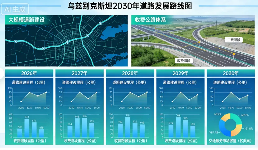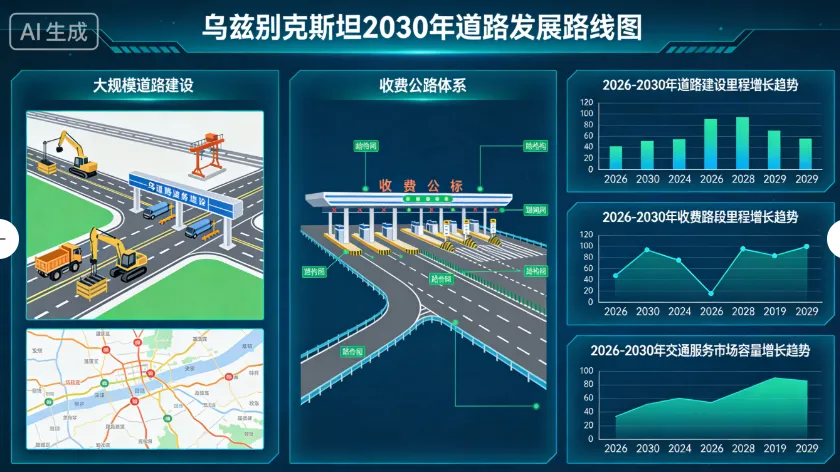 在持续扩大的道路投资与收费机制落地的双重推动下,道路建设、运营及配套服务企业将迎来更稳定的市场预期,乌兹别克斯坦交通基础设施正逐步向规模化与商业化并行演进。