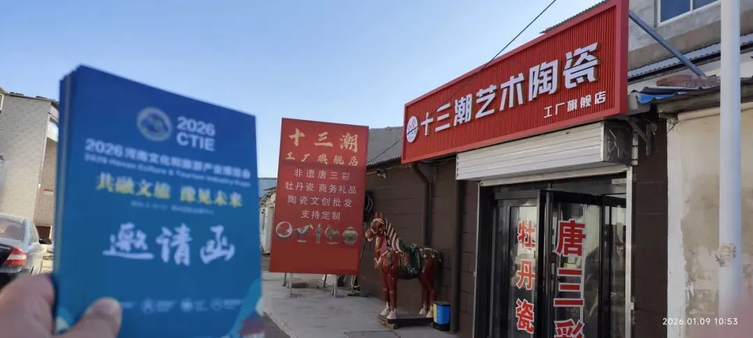 在南石山三彩小镇,组委会一行实地考察唐三彩传统工艺传承基地及产业园区,详细了解原料选取、成型施釉、高温烧制等全流程非遗技艺,以及小镇近年来推动“传统工艺+现代设计”的创新实践—将唐三彩元素融入茶具、饰品、家居摆件等文创产品,实现传统技艺与市场需求的精准对接。调研中,组委会与企业深入探讨唐三彩文化IP打造、产业集群培育及博览会参展合作等话题,鼓励企业借助2026河南文旅博览会平台,扩大唐三彩文化的影响力与市场份额。