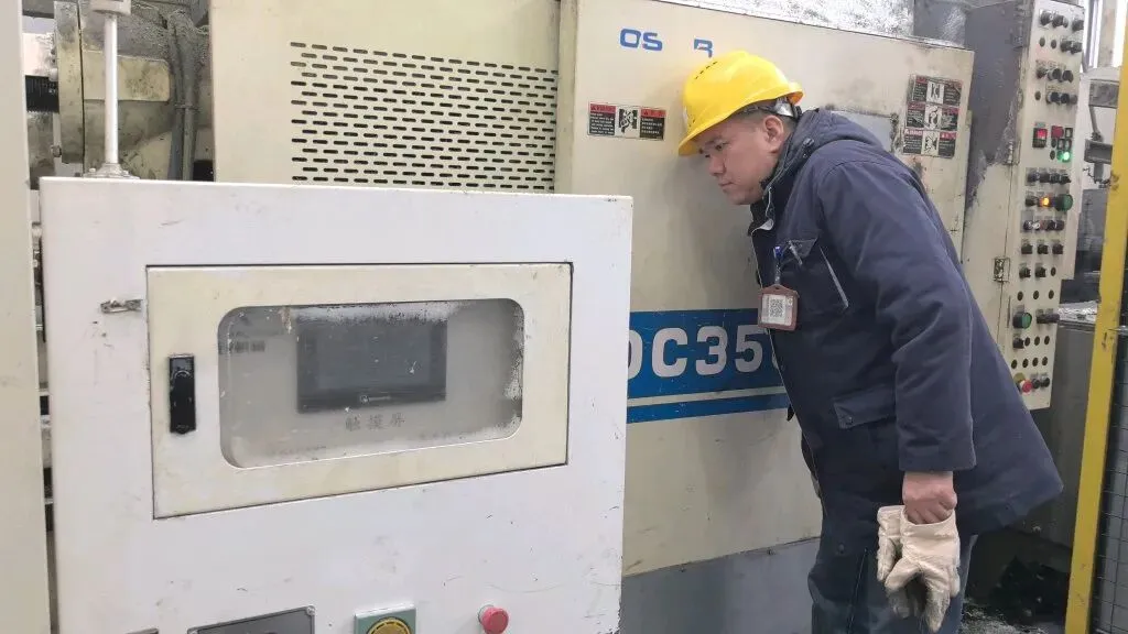 从“三线建设”的烽火中积淀底蕴,在半个世纪的风雨兼程里淬炼初心,从扎佐将军山旁,到坐落于新天高新技术开发区,60年来,一代代万江人,在机器的轰鸣中续写着属于自己和万江的诗章……在公司九分厂的压铸车间,方天波正俯身在一台压铸机旁,耳朵贴近运行中的设备,眉头悄然蹙起——这台为万江雨刮器壳体提供毛坯的关键设备,合模声里藏着一丝不易察觉的滞涩。作为一名拥有着10余年工龄的老员工,方天波从机器的呢喃中察觉到了一丝不正常。