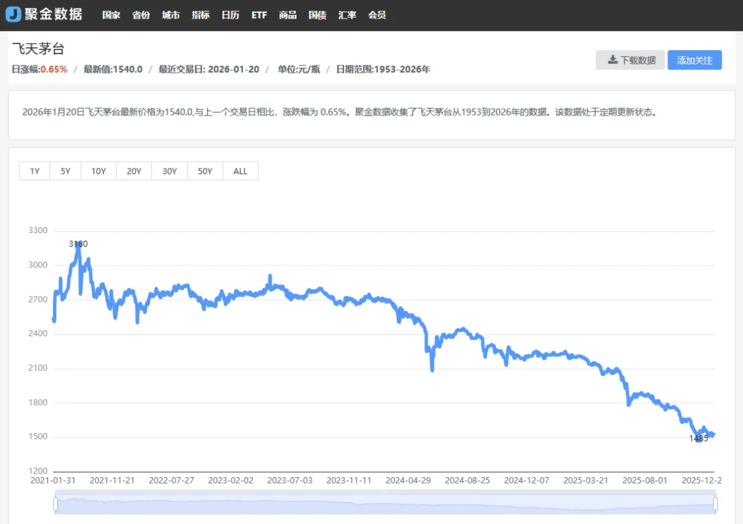 如果我们买不起一手茅台,能不能用五粮液代替?我的答案是最好不要。最近问五粮液的人比较多,应该是最近持续大跌,套了不少人了。另外就是五粮液股价下跌后,显得分红还挺高,可能有人想在这个位置抄底,那到底能不能搞呢?我们先不着急回答这个问题,我先跟大家讲一下白酒行业的特征,你们了解了行业特征之后,再去做投资决策,大家应该自己就能拿主意了。02,要讲白酒公司呢,我们要先理解白酒行业的竞争格局。白酒行业的竞争结构比较特殊,跟其他行业不一样,比如说同为消费行业的白色家电,白色家电是典型的一超多强的竞争格局。老大是美的集团,老二是青岛海尔,但他们是不一个老大压制老二的关系,美的是业绩规模要比海尔大一些,但是在产品层面的竞争是互有胜负的。比如说在空调、小家电中,美的是做的好一些,而冰箱和洗衣机,应该是海尔的产品更具有竞争力一些,大多数行业都是这样的,行业老大是领先的。但并不会对老二产生完全的产品压制,但白酒行业呢,竞争格局就比较特殊了,白酒行业的产品,是一个金字塔形的价格带,它是一个金字塔的结构。最顶层就是贵州茅台,中高层就是五粮液,泸州老窖,洋河这些,中下层就是剑南春,古今贡酒,今世缘这些,底层就是二锅头,牛栏山这些。上层的白酒产品,会对下层的白酒产品直接压制,就比如说,要是现在茅台的价格和五粮液的价格差不多,那就没人会去买五粮液了。那五粮液要想卖得出去的话,他就只能降价。之前飞天茅台贵的时候,最贵的时候几乎摸到3000元一瓶了,其他时间也差不多2700元一瓶。茅台在这么贵的情况下,五粮液和泸州老窖,这些牌子的酒当年就卖得很好,那我当年就干过这事啊,本来是说要买茅台的,结果太贵了,舍不得嘛。那我就只能退而且其次,买两瓶五粮液用呗,这个场景我相信只要是喝酒的人,应该都有过这样的经历。白酒行业是比较贴近日常生活的,这个不难分析的。我们大家先把这个最基础的行业竞争格局理解清楚了,我们再接着往下看。03,所以这轮白酒的下降周期,就是从顶层开始的,逐渐向下挤压的。从24年开始,飞天茅台的终端销售价格开始下跌了。我们可以一起来看这个飞天茅台的终端零售价格走势图。在2024年之前,飞天茅台的价格一直都稳定在2700左右,24年上半年一口气跌到了2200,然后横盘了半年左右。再然后是25年的3月,也就是去年,飞天茅台的终端价格一口气跌了一整年,现在的终端价格差不多是在1600左右。飞天茅台的出厂价格一直在1000元左右,所以产品涨价多卖的钱,都让渠道赚去了,对公司的财务影响是比较小的。但茅台的价格变化,它对五粮液和泸州老窖这种公司的影响非常大,茅台价格在2000以上的时候,五粮液我记得1000以上随便卖的。现在茅台的价格跌下来之后,五粮液明显就不好卖了,现在的终端价格应该只有800左右,而且销量受到了很大的影响。以前茅台贵的时候,很多人用不起茅台,那只能五粮液呗。现在飞天茅台1499的价格,直接在I茅台的APP上购买,虽然有点难抢,但还是抢的到的,而还能保证是真的,这个价位的消费者,那谁还去买五粮液呢。所以飞天茅台的终端零售价格开始下降,就开始挤压五粮液,泸州老窖这些二线牌子的价格和销量。那五粮液价格下跌的话,它也会往下挤压,去抢洋河,剑南春这些酒的销量。所以这一层层往下压的状态,就是当前白酒行业正在发生的事情。所以白酒行业的走势,或者说白酒行业的周期,它其实就是飞天茅台终端零售价格的走势和周期,我们把这个问题研究清楚就可以了。就是这一轮白酒的衰退周期中,为什么飞天茅台的终端零售价,会降低的这么多呢?从最高的3000元一瓶,降低到现在的1600左右,价格是接近腰斩的哦。按道理讲哈,消费行业的商品价格波动不会特别大,像飞天茅台这种价格直接腰斩的变化,在消费品领域还真就独一份,那为什么会出现这种情况呢?其实就是大家经常讲的一句话嘛,茅台是具有金融属性的,但这个金融属性,到底是个什么意思,我可以跟大家讲解的很清楚的。原因很简单,因为茅台是酱香酒嘛,这个品种的白酒是可以长期储存的,而且随着储存年份提高,茅台的饮用价值甚至还会不断的提高。我们上这个I茅台的APP上看嘛,今年的飞天茅台只卖1499,但是2019年的飞天茅台价格,官方直销渠道都要2600多。在当年茅台还是平价的时候,很多人会这样搞,反正现在茅台的价格不是很贵,我就多买一些茅台在家里放着。时间存久一点,到时候如果有应酬的需要,我掏出来一瓶五年甚至十年茅台,是不是就很有面子了。如果茅台酒的价格在上涨,那我这囤的酒相当于投资赚了嘛,如果酒的价格不涨,反正我还能自己用,横竖不亏。另外对于茅台的销售渠道来说,如果茅台的酒价在上涨,他们商业模式就形成了一种屯酒就能获利的模式,它不需要把酒卖出去啊,进货之后放仓库里就能获利了。这个时候就会出现囤酒的需求和价格上涨相互加强,价格上涨就会引发囤积,囤积就会导致短期需求大于供给,那飞天茅台的价格就会涨价。所以当年茅台就的价格能快速从1000元飙升到3000元的价格区间,就是这个因素导致的,这其实是一种很常见的买涨不买跌金融现象。所以飞天茅台酒的价格周期,除了市场需求的变化之外,对它影响最大的就是这个库存周期了,白酒涨价的时候,大家会囤酒,越来越升值。相反在白酒价格下跌的时候