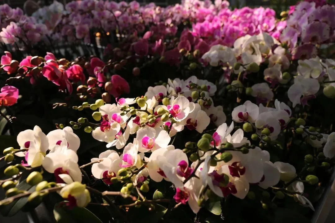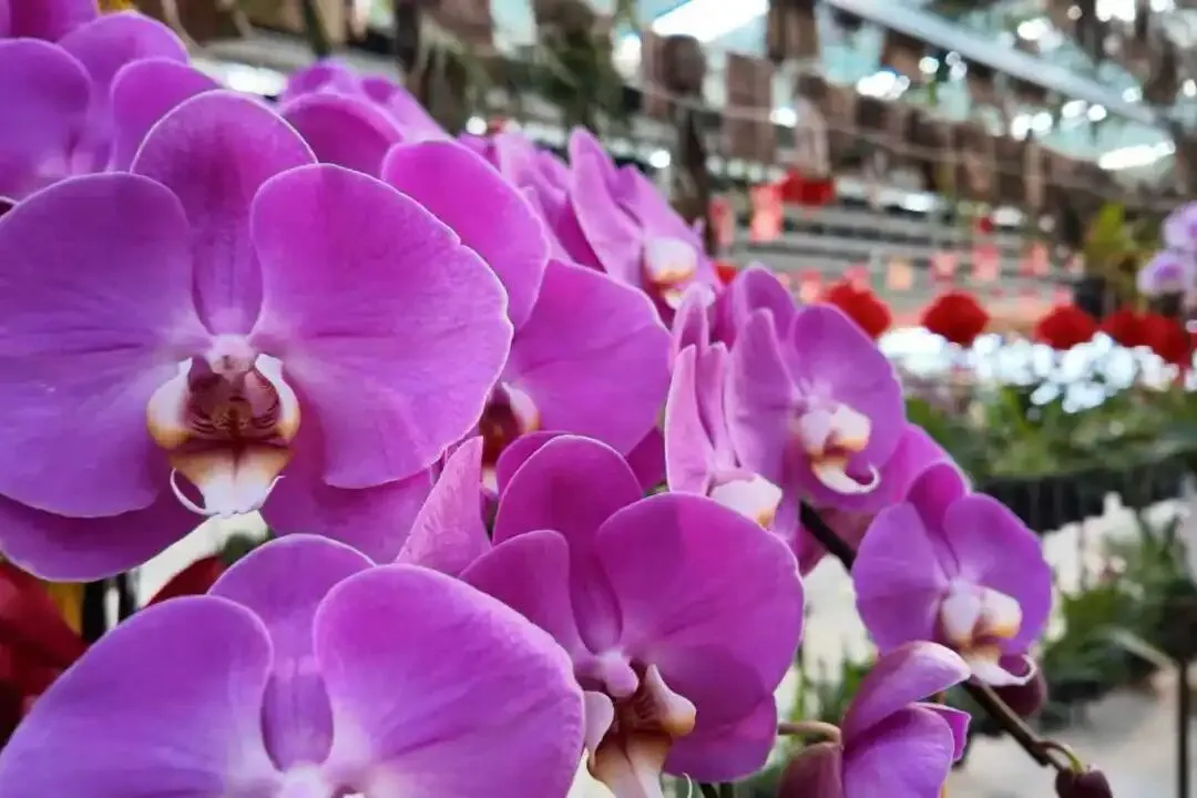 花展汇集了超过10万株精心挑选的年宵花及盆器。走进展区,蝴蝶兰如群蝶翩跹,轻盈灵动;文心兰花瓣摇曳,随风起舞;蕙兰叶姿挺拔,花序舒展;兜兰则以奇巧花形与温润质感,平添几分意趣。各类珍稀兰花在匠心布局与光影映衬下,呈现出兰科植物的观赏多样性,营造了一片清幽宁静、高雅脱俗的意境空间,吸引众多群众驻足流连、拍照记录。