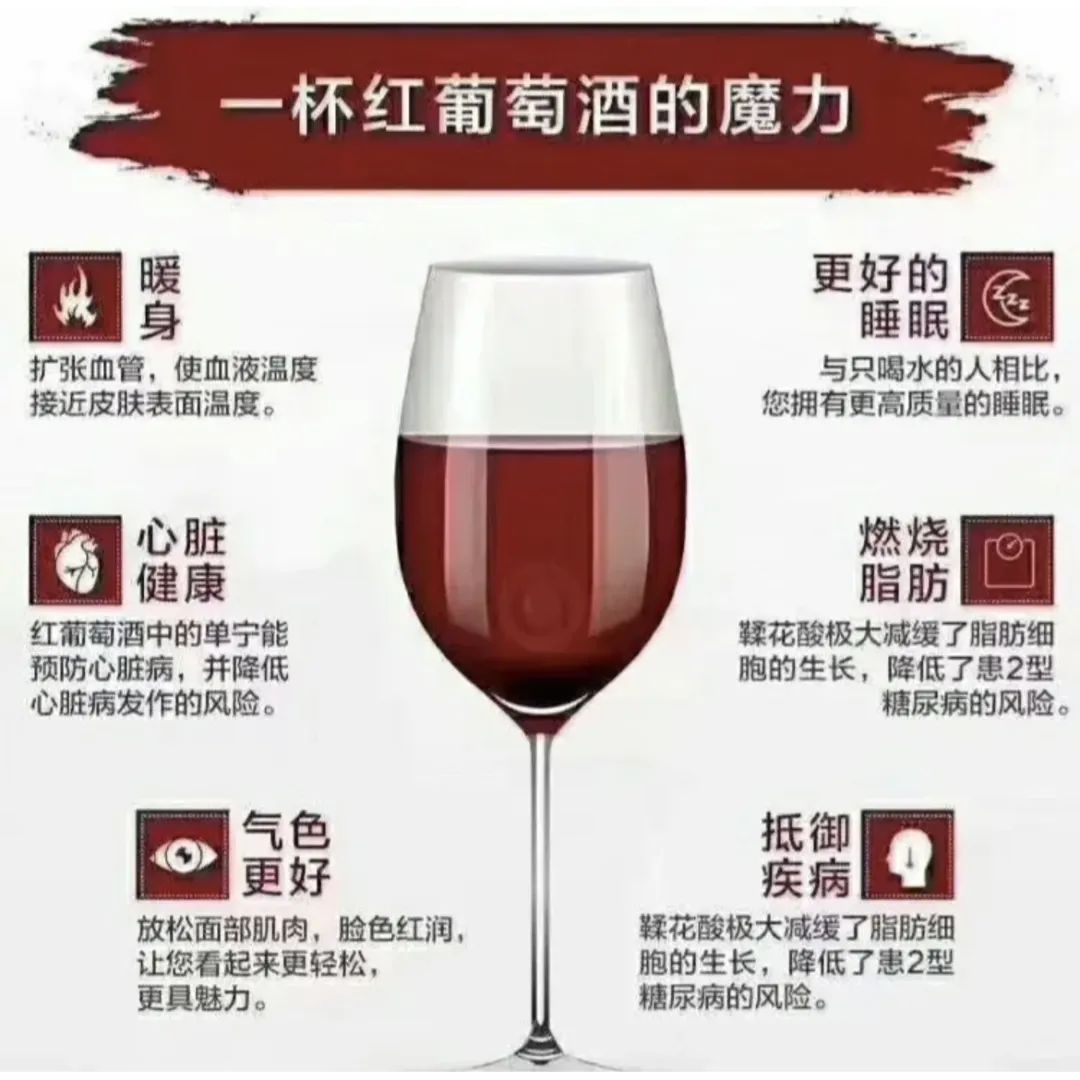 红酒中所含的白藜芦醇,能帮助远离肥胖,还能帮助预防感冒,而且对眼睛也有好处。还有调查表明,葡萄酒对心脏有益,每天喝一杯葡萄酒能让精神状态更佳~
