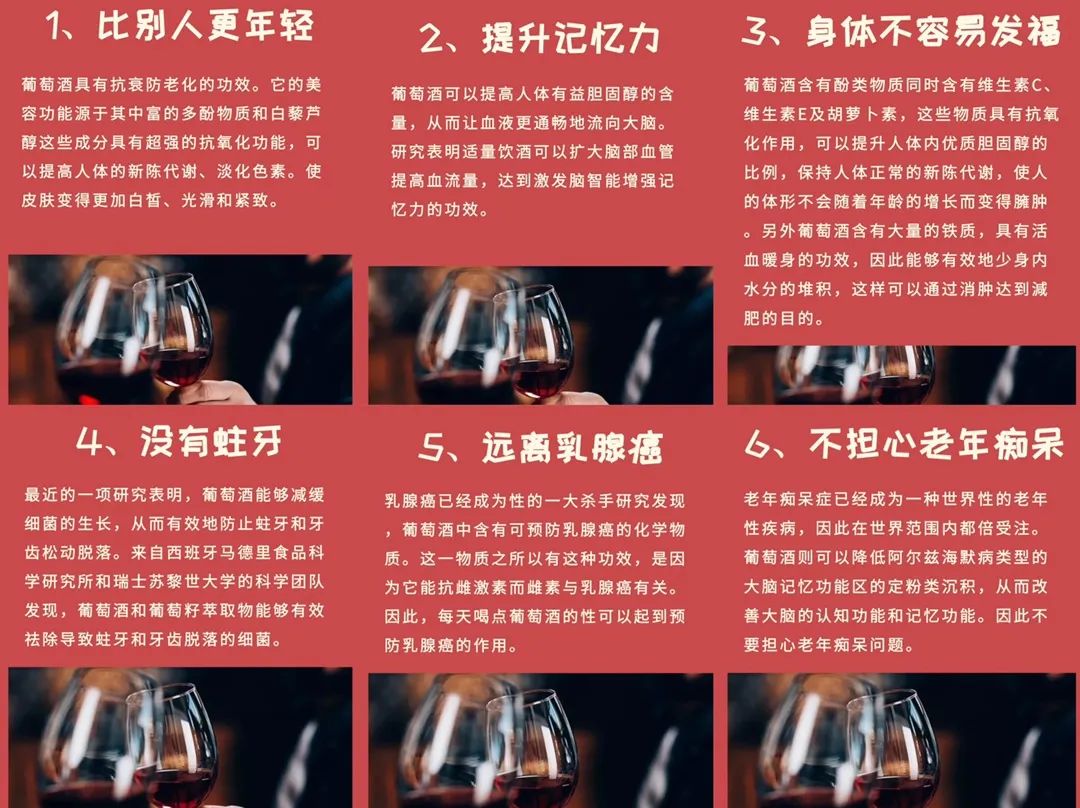 红酒也是一种健康饮品。适当喝点红酒,好处很多~