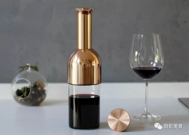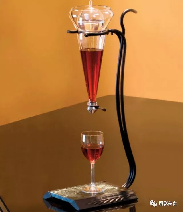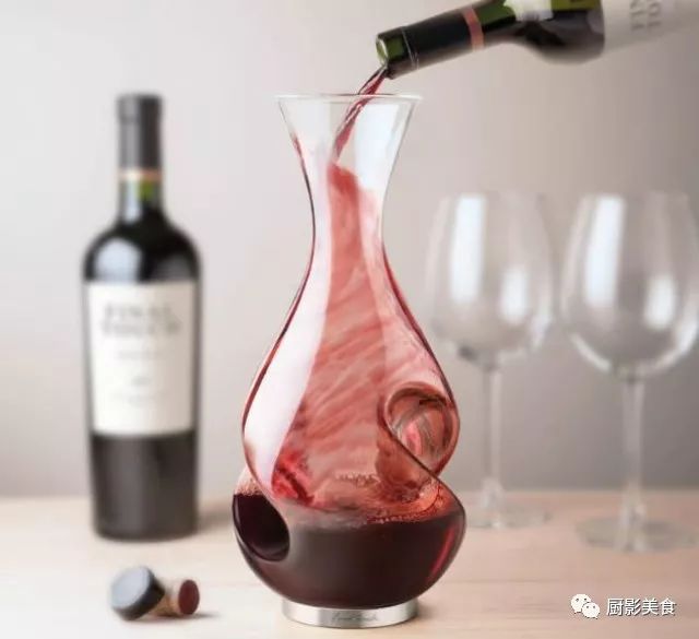 3)醒酒器醒酒:是将葡萄酒从瓶中转移到醒酒器中,让酒液在醒酒器中与空气充分接触,单宁柔化和香气散发的速度较快,比“瓶醒”方式快很多。醒酒器醒酒是最理想的醒酒方式,不仅能完美快速的柔化单宁、释放香气和去除异味,还能去除陈年老酒的沉淀。醒酒器醒酒是最常用也最实用的方式。