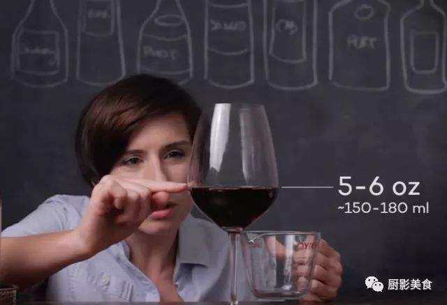 一杯葡萄酒的标准量应该是5-6盎司,也就是150-180毫升,不过,由于酒杯的形状、容量不同,我们一般将红酒倒至酒杯杯肚最宽处即可。
