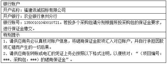 8.2.1现场获取:获取采购文件的供应商请到地址: 泉州市鲤城区海滨街道百源路1-1号中旅综合楼4层福建讯诚招标有限公司购买竞争性磋商文件。购买时应提供营业执照(复印件加盖公章)办理报名登记手续。未购买采购文件及办理报名登记手续的供应商其谈判响应将被拒绝。