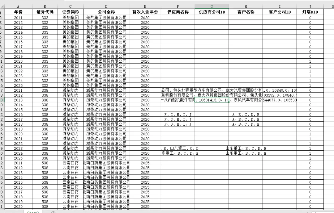 年份、证券代码、证券简称、公司全称、首次入选年份、供应商名称、供应商公司ID、客户名称、客户公司ID、灯塔DID