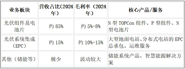 光伏组件及电池片业务是公司的营收支柱,但其毛利率受行业价格战影响波动剧烈,是公司盈利能力的核心决定因素。光伏系统集成业务虽然营收占比相对较低,但其毛利率相对稳定且较高,是公司利润的稳定器和组件出货的保障。