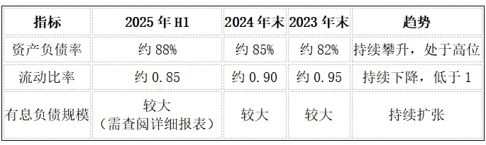 流动比率:流动比率低于1,表明公司短期偿债压力巨大,流动资产不足以覆盖流动负债。高负债率和低流动比率是公司财务健康状况的一级风险信号。