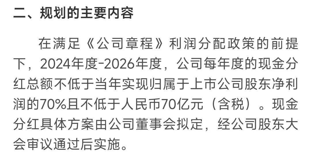 即保底分红有70亿,按照当前股价,对应的股息率超过了7个点,这也是很多人愿意一直持有的原因。毕竟在利率下行的环境下,7个点的利率是真香,同时公司可以用三年时间来逐步走出困境。