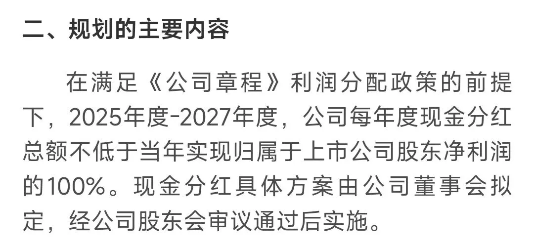 从公司2025年的利润预测来看,年归母净利润大幅度下降,且下降幅度超过了60%,白酒行业深度调整下,遇到的困难是真的大,而且这还是在2024年已经下滑的基础上继续大幅度下滑,由此可见公司也的确遇到坎了。接下来的一个公告则直接推翻了之前保底70亿分红,变成了2025-2027年对应的当年全部净利润,即2025年分红只有22-25亿,那么基于当前股价,对应的股息率也就只有2点多,等于说本来保底的分红就随着这个公告化为了泡影,那些持股等着吃利息的要拍疼了大腿。