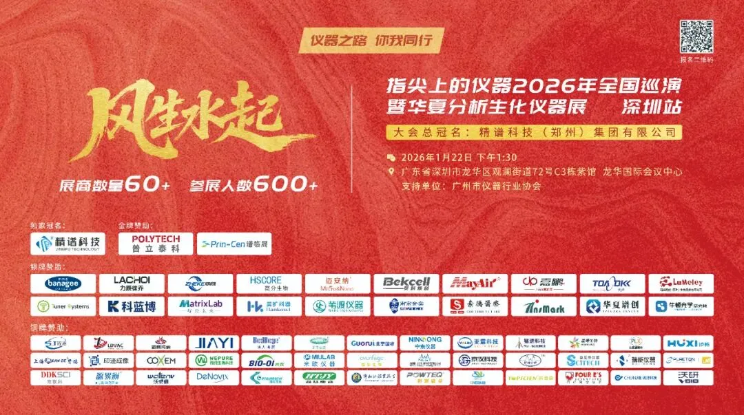一月的深圳,虽浸在三九晴冷的干燥空气中,早晚的凉意却挡不住行业相聚的热忱。1月22日,“指尖上的仪器2026年全国巡演暨华夏分析生化仪器展 深圳站”圆满落幕,作为2026年首场“指尖上的仪器”系列会议,这场盛会为全年的行业交流按下了启动键,也为深圳的冬日注入了浓厚的科技暖意。