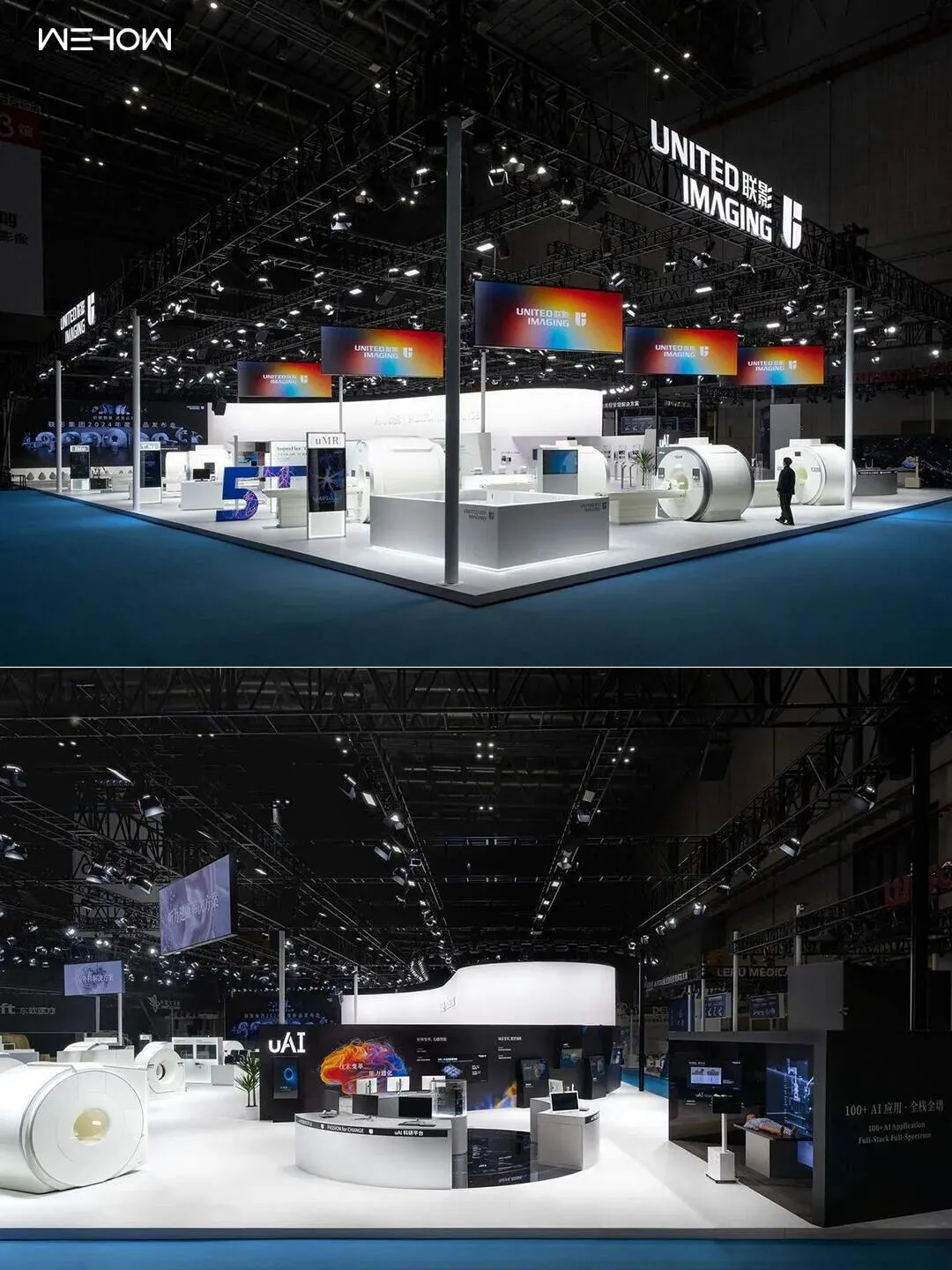 宁王本周首秀中东WFES,用“储能展不卖储能”的反常识操作,成为全场焦点,完美诠释B2B品牌“卖生态、卖未来”的展会逻辑。① 反常识吸睛:C位放弃储能柜,重点展示eVTOL飞行器和1:1磐石底盘,打破“电池供应商”的刻板印象,传递“新能源生态服务商”定位;② 技术做背书:TENER Stack等核心储能产品置于侧方,模块化展示底层实力,为生态布局撑腰,同时联动行业传递储能在中东能源转型中的核心价值;③ 地域适配:用“科技大玩具”飞行器贴合中东高净值人群偏好,熊猫+显眼包伴手礼玩梗破圈,兼顾专业度与传播性。3. 联影医疗(高端医疗展会):医疗品牌的「技术+情感」双破局