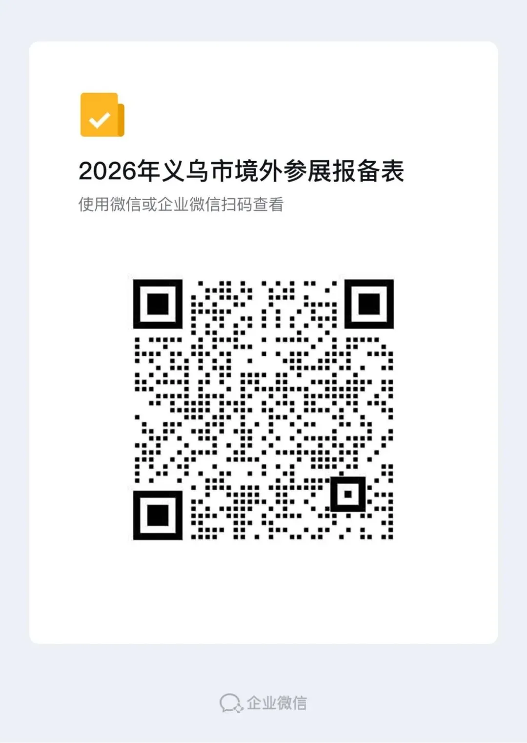 未通过公布的建议组展公司参加或参加未在支持目录内的成熟型展会(举办时间5年以上,展位200个以上),请各参展主体自行进行参展报备,报备请扫码(务必填清楚每条内容)。