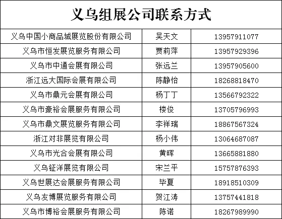 注意:具体参展事宜可咨询以下义乌组展公司