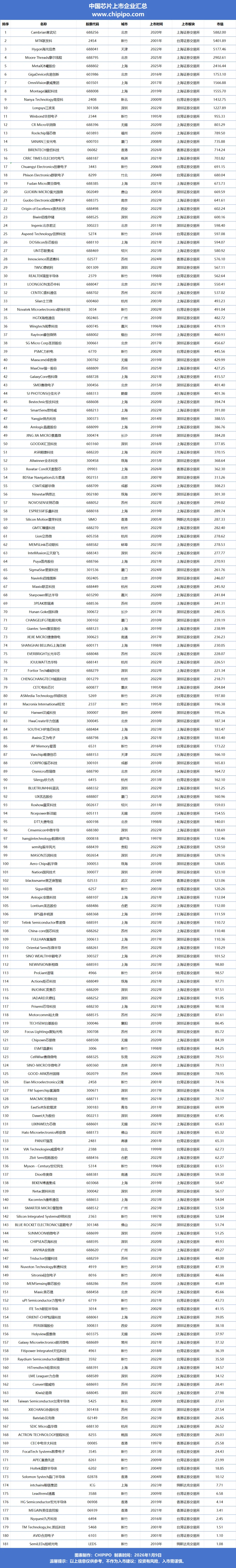 当“国产替代”成为产业共识,当资本持续涌入芯片赛道,中国芯片产业的真实格局究竟如何?据CHIPIPO不完全统计,今天我们通过一组数据图表,带你看清181家芯片上市企业市值全貌。
