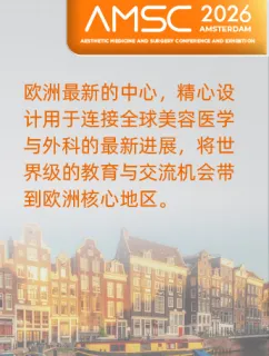多年来,AMSC已在亚洲成功举办多届。2026年,AMSC将开启新篇章 --将版图拓展至欧洲。这一战略性拓展将扩大会议的覆盖范围,深化全球美容医学与外科领域的行业对话。