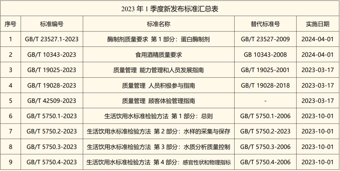 泸州老窖始终秉持“让中国白酒的质量看得见”的质量理念,主动跟踪行业政策法规和标准动态,严格执行相关政策法规及标准,提升白酒产业链标准化水平,持续推动泸州老窖高质量发展。2023年一季度,泸州老窖对白酒行业重要政策法规和标准变化情况进行了梳理,详细如下: