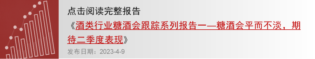 地产酒:春节受益返乡动销超预期,节后大单品控量挺价为主,一季度地产酒龙头公司已完成全年进度40%以上,部分表现优秀公司已完成全年50%以上。伴随消费场景复苏,预计地产酒酒企的产品结构将加速改善。