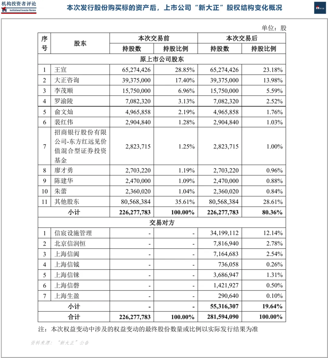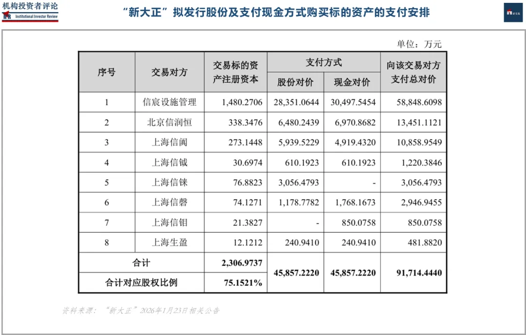 昨日(1月23日)晚间“新大正”发布的公告中,正式披露了资产评估值、交易价格等细节,并微调交易方案(调整仅涉及8个交易对方之间转让标的资产份额的变更,交易方案未新增或减少交易对象,未对标的资产范围进行变更等)。