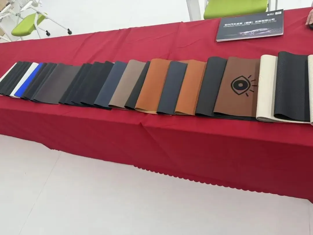 展会现场,宏兴通过精心制作的各类内饰包覆工艺样板,直观演示了上述材料在方向盘、座椅、仪表板及门饰板等部件上的实际应用效果,为奇瑞国际设计与工程团队提供了切实的选材参考与合作构想。