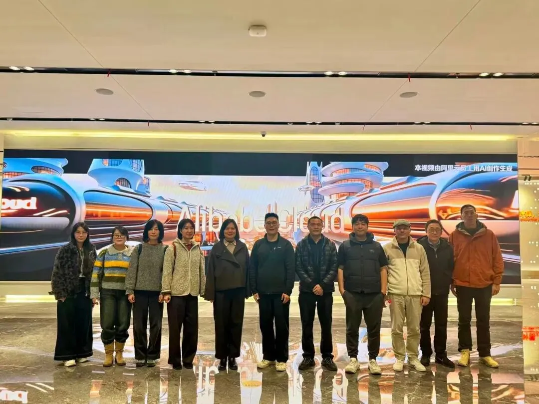 2026年1月15日,数字艺术学院院长马华、院长助理董飞飞、人工智能创新应用实验室负责人钱华、数字媒体技术工作室负责人孙一帆、信息交互设计工作室负责人陈一昕、虚拟现实工作室负责人孙佳琳、以及周沁、陈珏老师,一同前往阿里云设计中心开展AI艺术教育交流及访企拓岗专项活动。