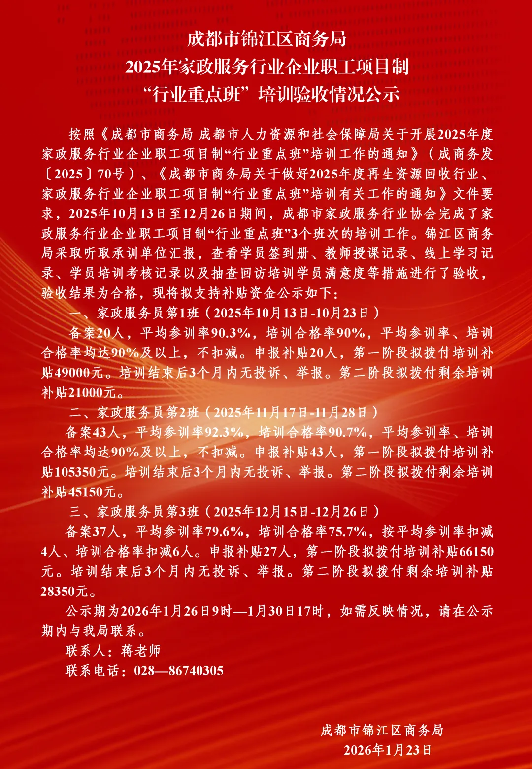2025年家政服务行业企业职工项目制“行业重点班”培训验收情况公示