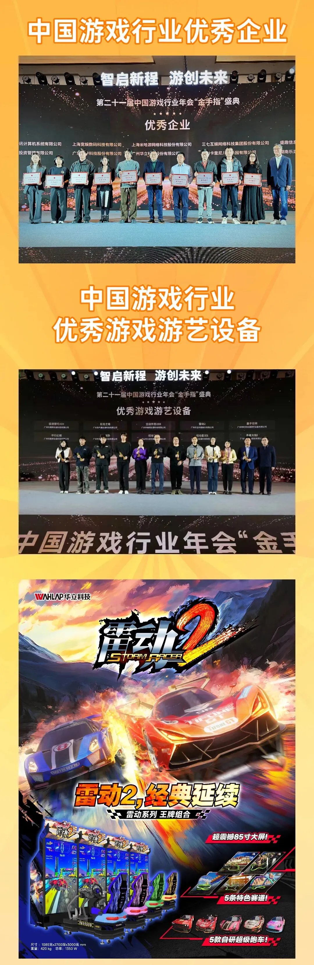 【喜讯】华立科技荣获“中国游戏行业优秀企业”称号,《雷动2》获评“中国游戏优秀游戏游艺设备”奖!