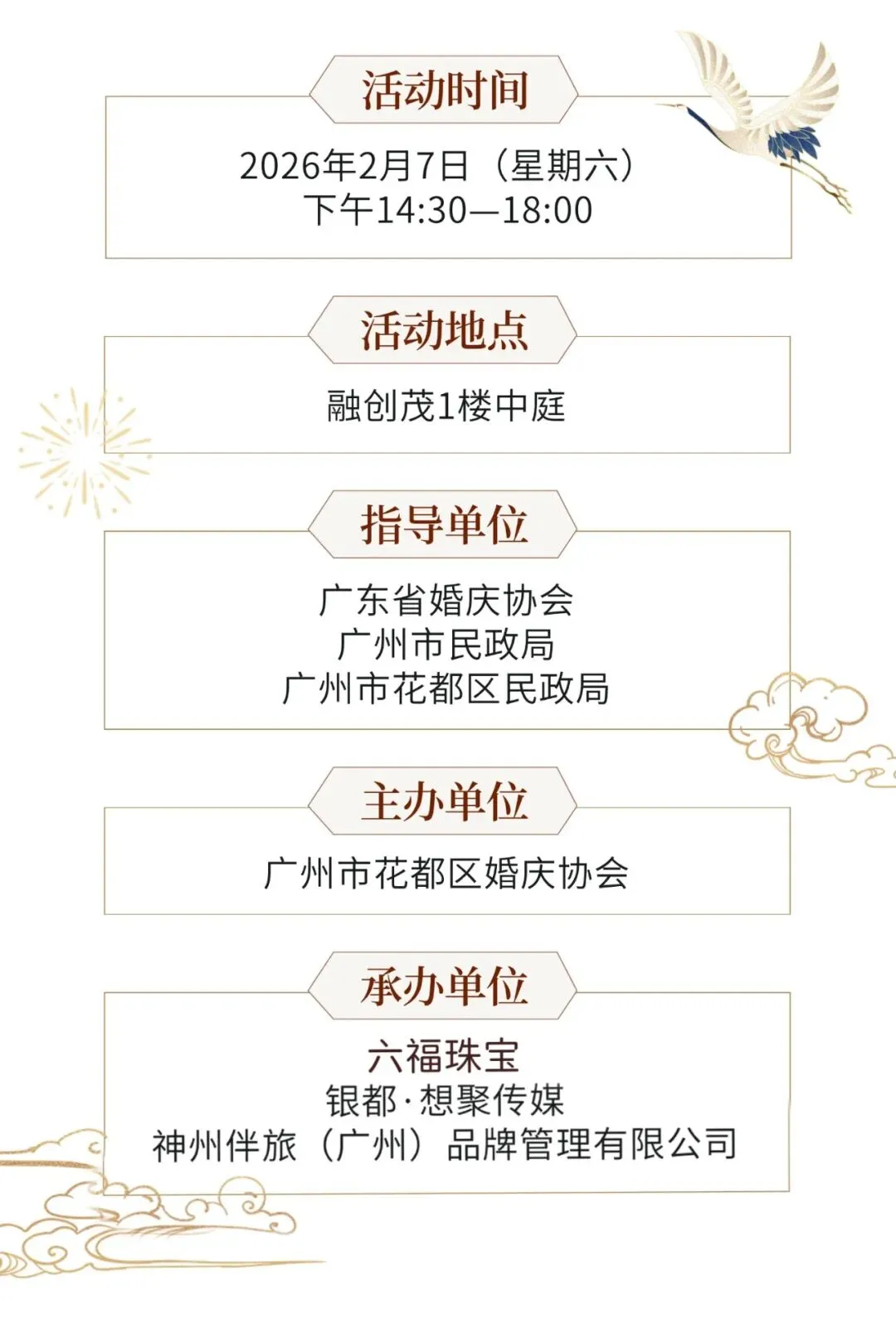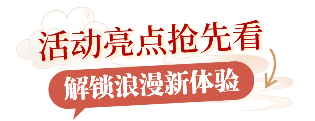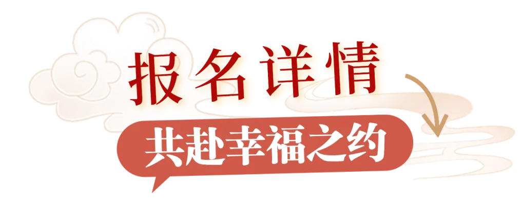 注:报名成功后,99对新人可来到现场参与“甜蜜之旅”打卡集章活动,完成活动任务即可领取婚庆大礼包一份。其中33对新人需穿着传统服饰(由主办方提供)参与中式婚礼仪式。(名额有限,先报先得,经审核后通知入选结果及活动详细信息)