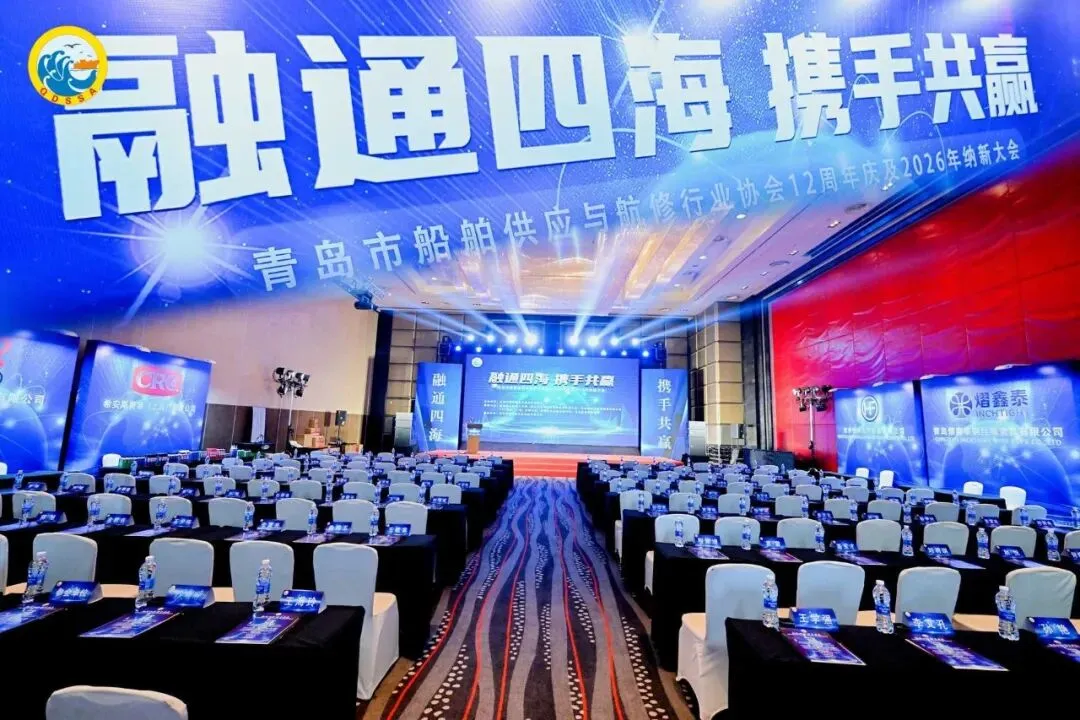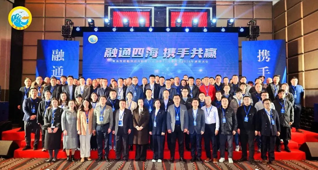1月23日下午,“融通四海·携手共赢”暨青岛市船舶供应与航修行业协会12周年庆及2026年纳新大会在青岛隆重举行。本次大会旨在推动行业技术服务发展,繁荣航运市场,促进政企协三方协同。来自全国各地的船东、船级社、船舶服务企业、行业管理机构及会员单位等代表共聚一堂,共话航运未来。