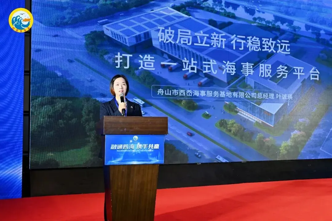 舟山市西岙海事服务基地有限公司总经理叶诚瑛受邀出席,并在大会作国际虾峙门中国(普陀)航运服务产业园专题推介宣讲,标志着产业园2026年度推介会活动的首站——青岛站取得圆满成功。