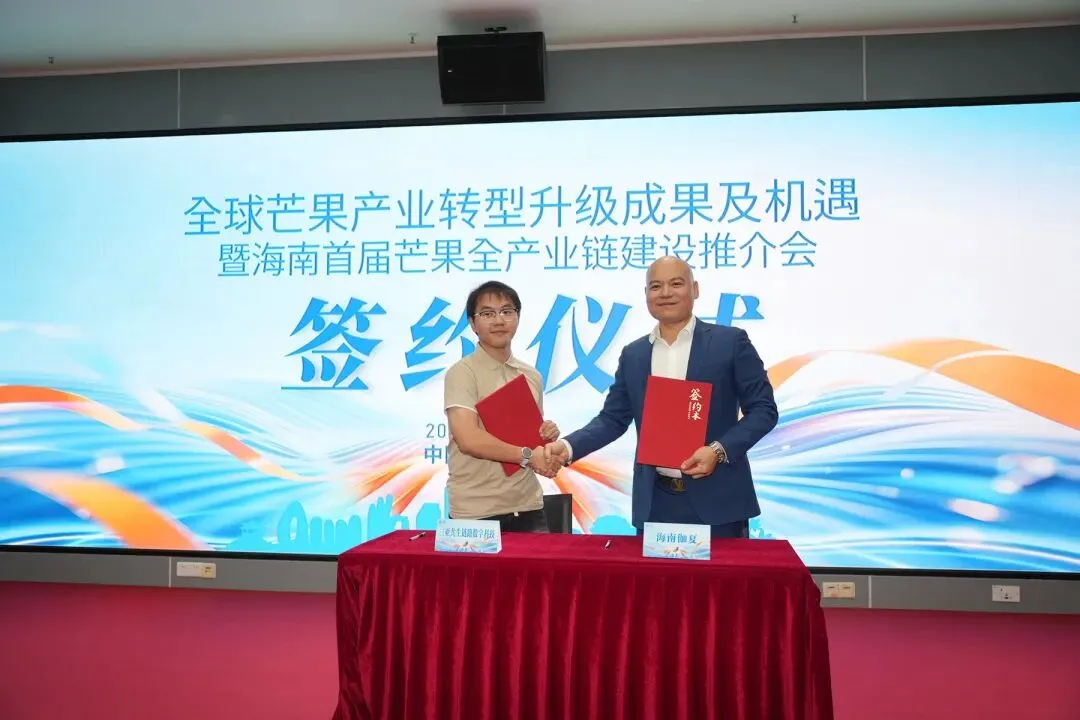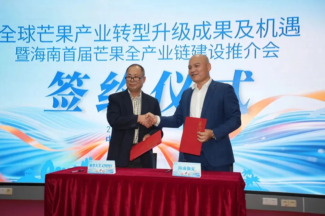 1月23日,“全球芒果产业转型升级成果及机遇”暨海南首届芒果全产业链建设推介会在三亚崖州湾科技城高新区举办。会上,海南伽夏公司分别与加拿大艾文图酒庄、三亚共生链路数字科技有限公司、海南鑫捷威农业科技有限公司现场签约。