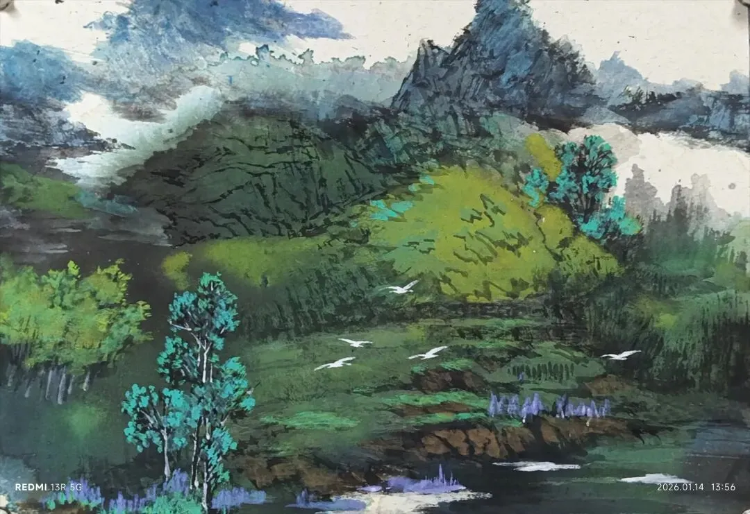 随着画画的时长,对传统山水的再认知,画风从以前的铁笔横扫、秋风卷席,慢慢的变为注重诗意与风韵、静气与营造,更注重色彩的运用。现代社会的日新月异,人们出行食居的快节奏变化,以及人们对审美要求的更新,对美的要求也应是色彩斑斓、形式万种了。在我过往的写生过程中,深深的感受到斑斓的色彩,更能表现出现代社会的进步与辉煌,更符合大众的审美要求。