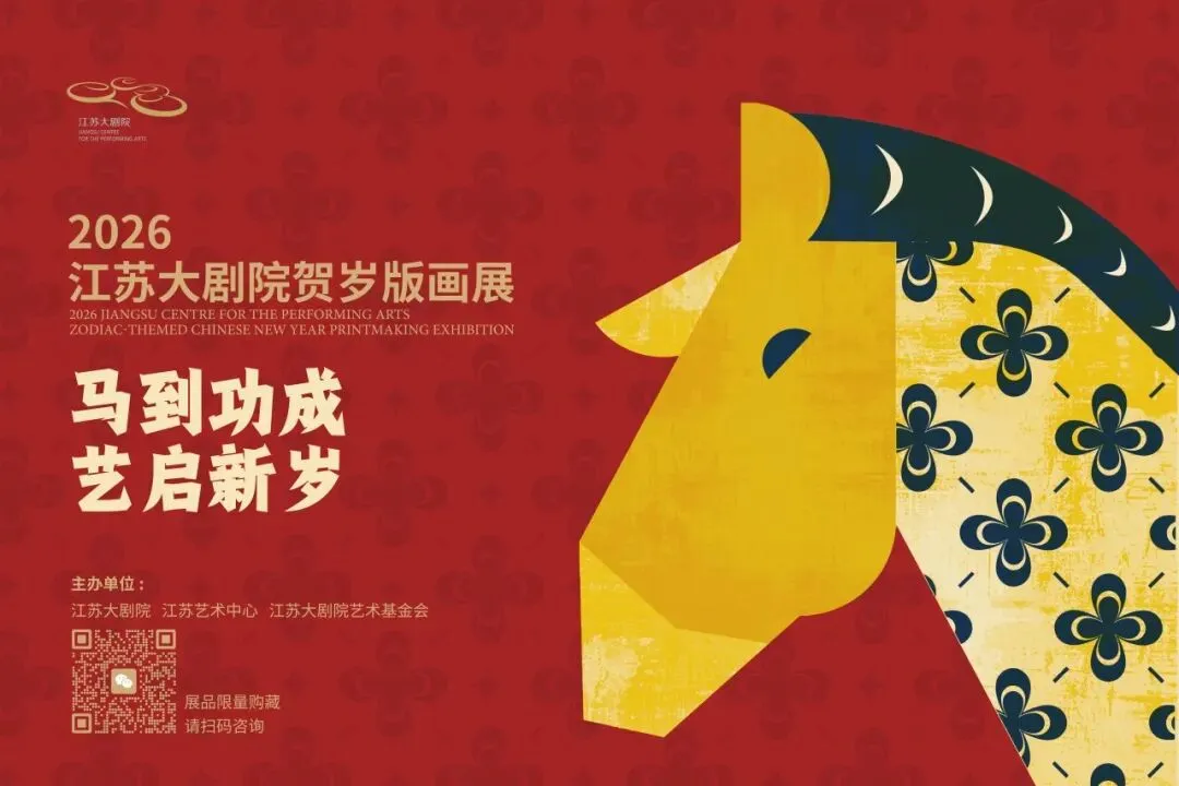2026年度展览首次对外开放作品征集,收到来自全国版画家投稿作品400余件,经组委会评选入展作品200件。延续展览形式,江苏大剧院将于2026年2月1日——2026年4月1日举办“马到功成 艺启新岁——2026江苏大剧院贺岁版画展”,并在江苏大剧院共享大厅、江苏大剧院美术馆开展展销活动。为新春佳节增添了喜庆祥和的“艺术年味”的同时,也为广大艺术爱好者们献上一份独特的新年祝福。
