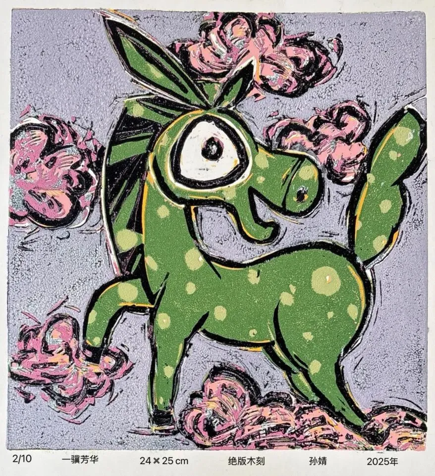 孙婧《一骥芳华》绝版木刻 25×18cm 2025年
