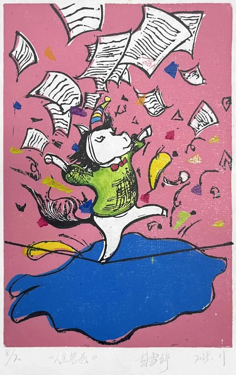 甘雪婷《人生答卷》套色木刻 18×12cm 2025年