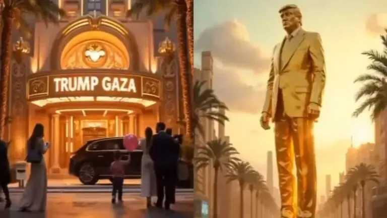 此后,特朗普还在个人社交平台发布了一段AI生成的宣传视频,在画面中,一座名为“特朗普加沙”的镀金都市恢宏耀目,而城市中心,一尊巨大的特朗普金色塑像正俯瞰着整片土地。