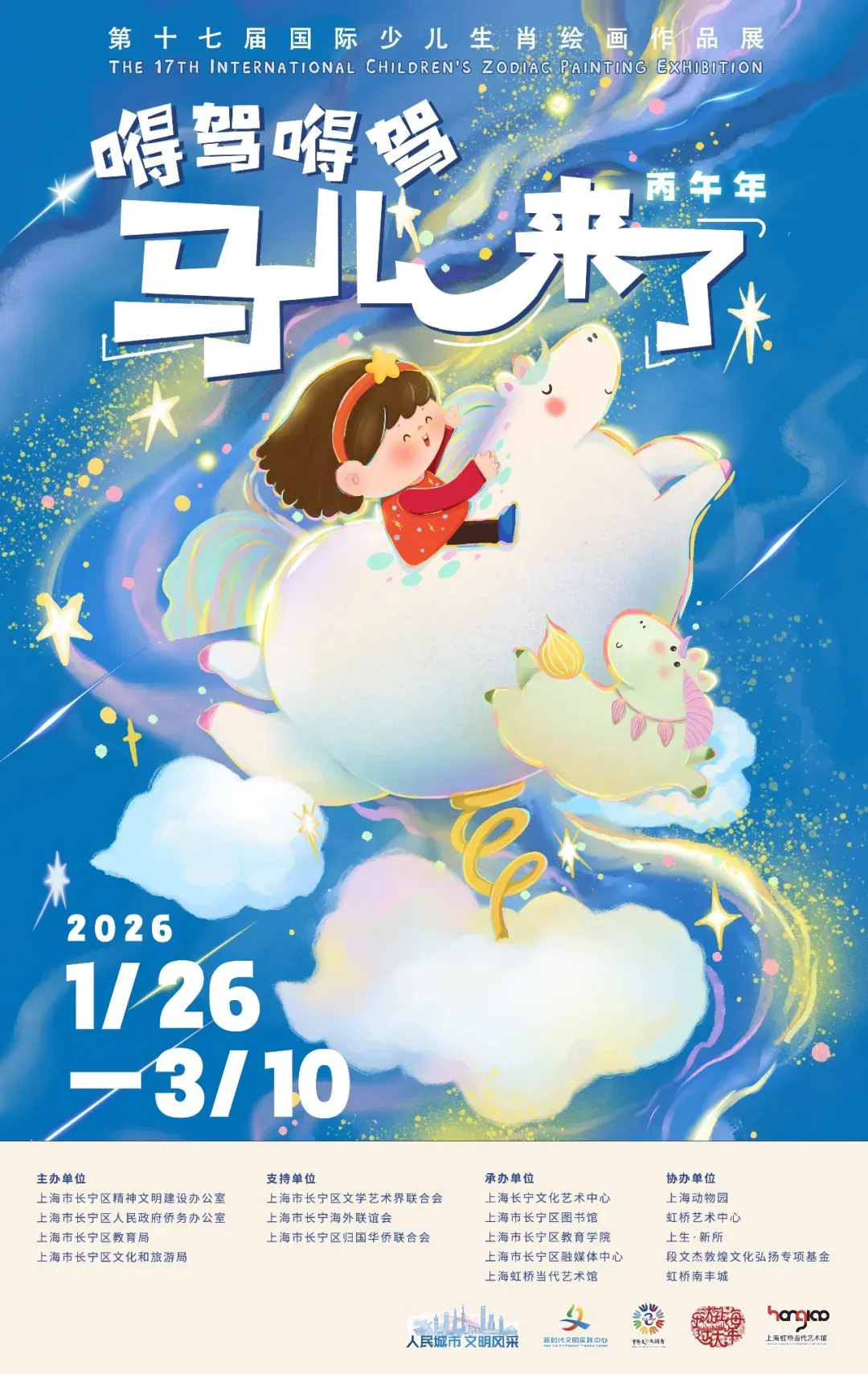 嘚驾嘚驾,马儿来了!第十七届国际少儿生肖绘画作品展将于2026年1月26日开幕。展览将分为五大展区,展出获奖、入选作品五百余件。恭喜本次入展的小艺术家,期待我们在展览上的相遇!