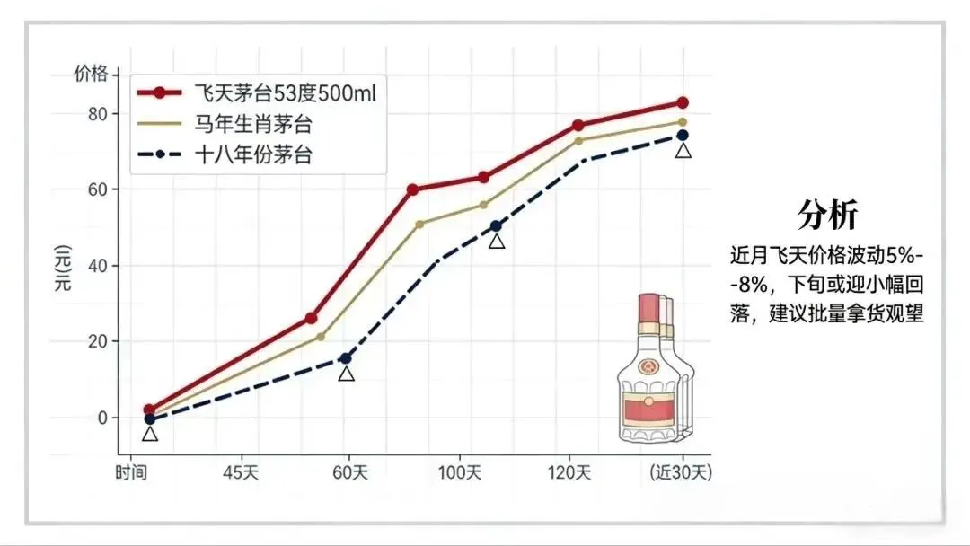 飞天茅台最近价格稳中有小幅波动,批发价相比上月略降了一点,正是入手的好时候;