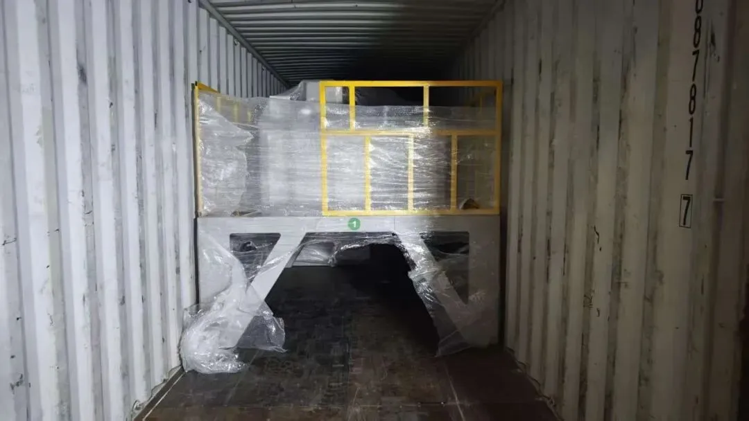 为保障跨国运输安全与后续组装效率,技术团队依旧严苛把控每一处细节:所有拆散部件均贴标归类、精准配对,核心精密组件单独做防潮防锈密封处理,机械结构件采用专用加固方案固定,既最大化利用舱位空间,又能有效抵御海运途中的颠簸与温湿度变化,为海外现场的高效组装、精准调试提供坚实保障。